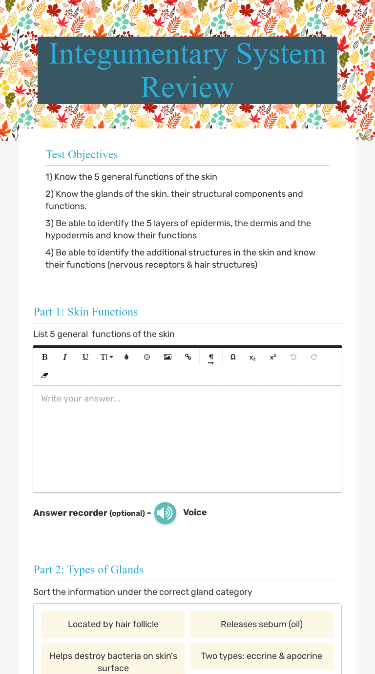 The two basic tissues of which the skin is composed. Click on integumentary system and answer the following questions. The integumentary system consists of the skin, hair, nails, the subcutaneous tissue below the skin, and assorted glands. They will also create a worksheet for other students to fill in. Insert the appropriate letter(s) or term(s) in the answer blanks. Practice ap chapter 4 and . An answer key and word bank is included. What structures are associated with the integumentary system? What tissue type is commonly found in the subcutaneous layer of the skin? What tissue type makes up the epidermis . The anatomy and physiology of animals/skin worksheet/worksheet answers · 1. Using the key choices, choose all responses that apply to the following descriptions. Quiz or worksheet over the parts of the integumentary system for anatomy.